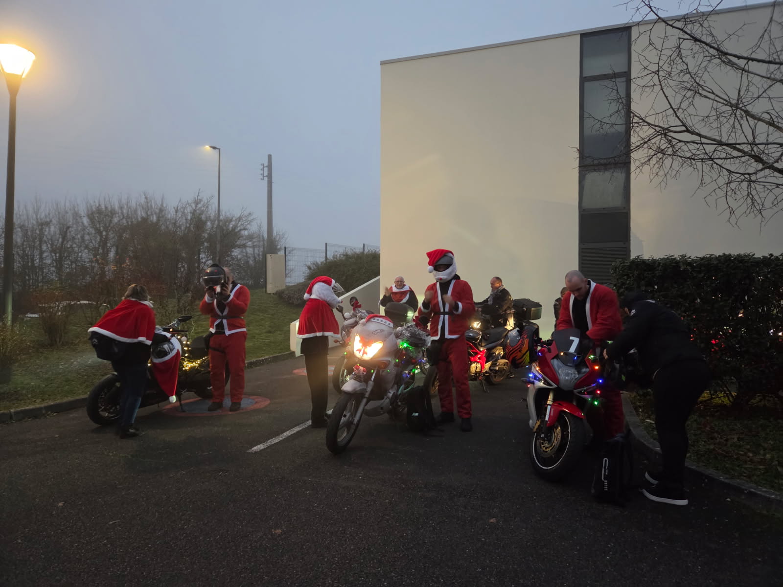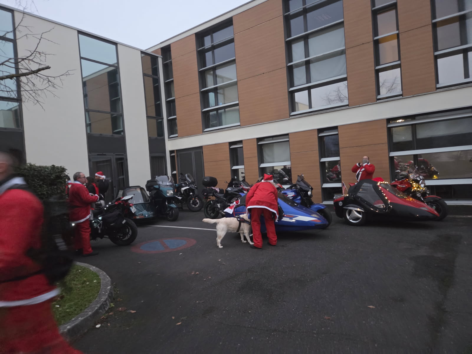 Ce dimanche, les Pères Noël en baladent en motos, étaient de passage à l'hôpital de Montrichard.